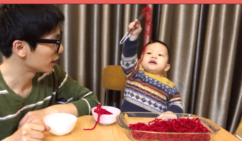 Giải cứu bố mẹ mùa dịch bệnh: Con được làm quen với vật dụng cùng trò chơi "Gắp mì len"