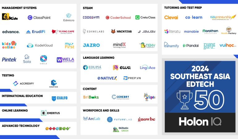 The Southeast Asia EdTech 50 là bảng xếp hạng uy tín của HolonIQ mới đây đã công bố danh sách các công ty EdTech triển vọng nhất khu vực Đông Nam Á năm 2024. Đây là nơi vinh danh những công ty