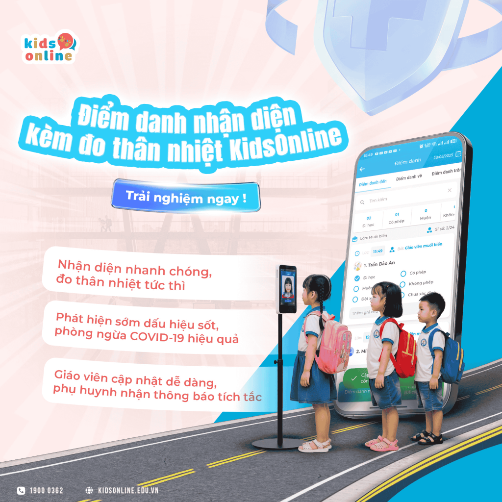 Trong giai đoạn dịch COVID-19 bùng phát trở lại, điểm danh nhận diện KidsOnline là giải pháp toàn diện giúp trường mầm non đảm bảo an toàn, quản lý hiệu quả và xây dựng niềm tin với phụ huynh. Hãy liên hệ với KidsOnline ngay hôm nay để trải nghiệm công nghệ tiên tiến này và cùng bảo vệ sức khỏe cho thế hệ tương lai!