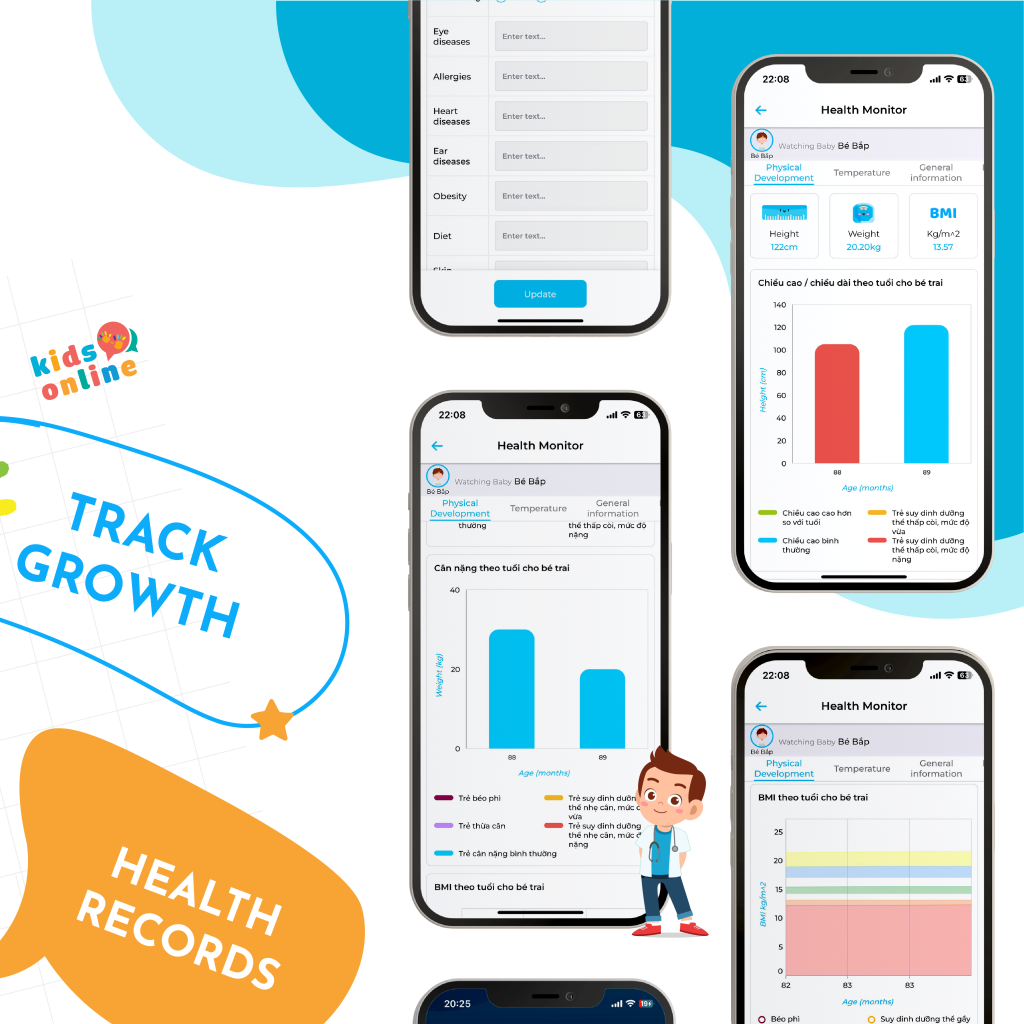 • Tracking Physical Development: By providing accurate data on height, weight, and BMI, KidsOnline helps preschools and parents make informed decisions regarding children’s diet and activities. This ensures that each child receives the support they need to grow healthily.