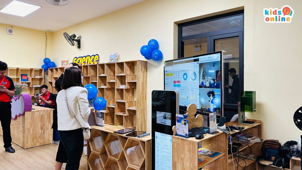 Phòng trải nghiệm KidsEdu STEM – Robotics có chủ đề “Vệ binh bảo vệ Trái Đất” với 5 khu vực khám phá bao gồm những thiết bị, ứng dụng thông minh hỗ trợ công tác quản lý và dạy học cùng bộ học cụ đa dạng và hiện đại.