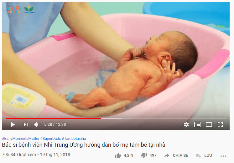 Clip “Bác sĩ Bệnh viện Nhi hướng dẫn tắm bé tại nhà” đạt gần 800,000 lượt view và chia sẻ chỉ trong 12 tháng trên youtube, đem đến nhiều kiến thức bổ ích cho cha mẹ.
