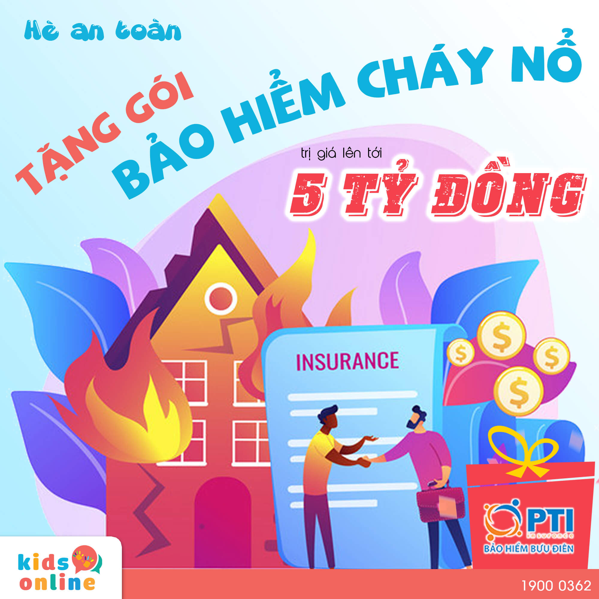 Cơ hội DUY NHẤT trong tháng – TRỢ GIÁ SỐC – Nhận ngay Bảo hiểm cháy nổ bắt buộc trị giá tới 5 TỶ ĐỒNG hoặc hàng trăm gói bảo hiểm thân thể học đường dành cho tất cả học sinh trong trường khi đăng ký sử dụng KidsOnline trước 31/08/2020: