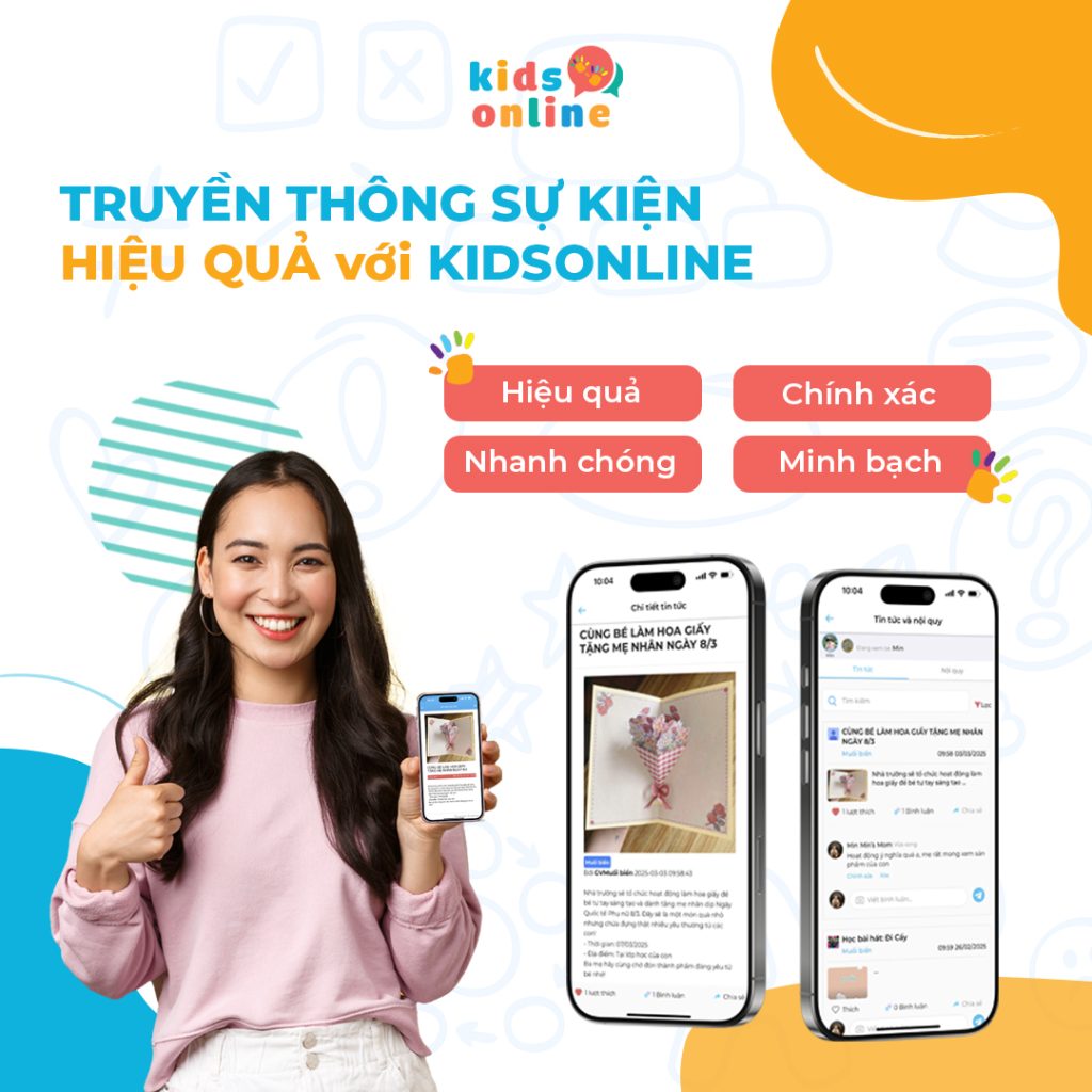 Với KidsOnline, nhà trường không chỉ nâng cao chất lượng giảng dạy mà còn tối ưu quy trình quản lý, giúp phụ huynh an tâm và tăng cường sự kết nối giữa gia đình và nhà trường. Đừng bỏ lỡ cơ hội để quản lý trường mầm non hiệu quả hơn ngay hôm nay!