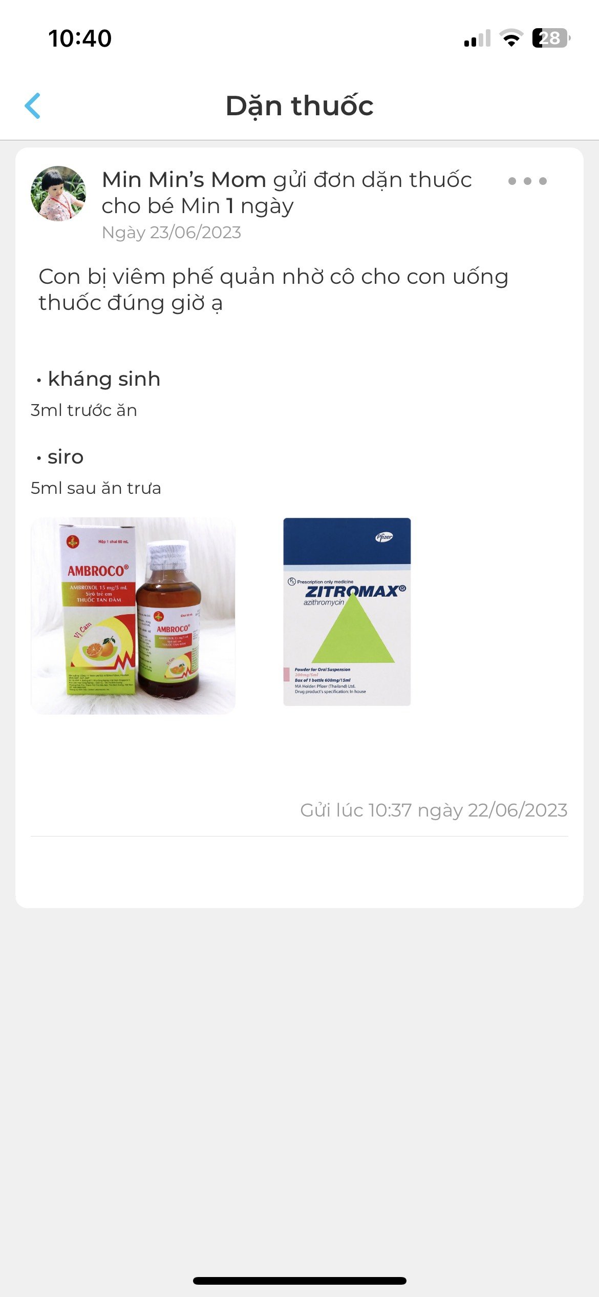 Ghi chú chi tiết về đơn thuốc và cách dùng: Bố mẹ có thể dễ dàng nhập thông tin về bệnh của bé, đơn thuốc, hình ảnh thuốc, cách dùng, liều lượng và thời gian sử dụng chi tiết.