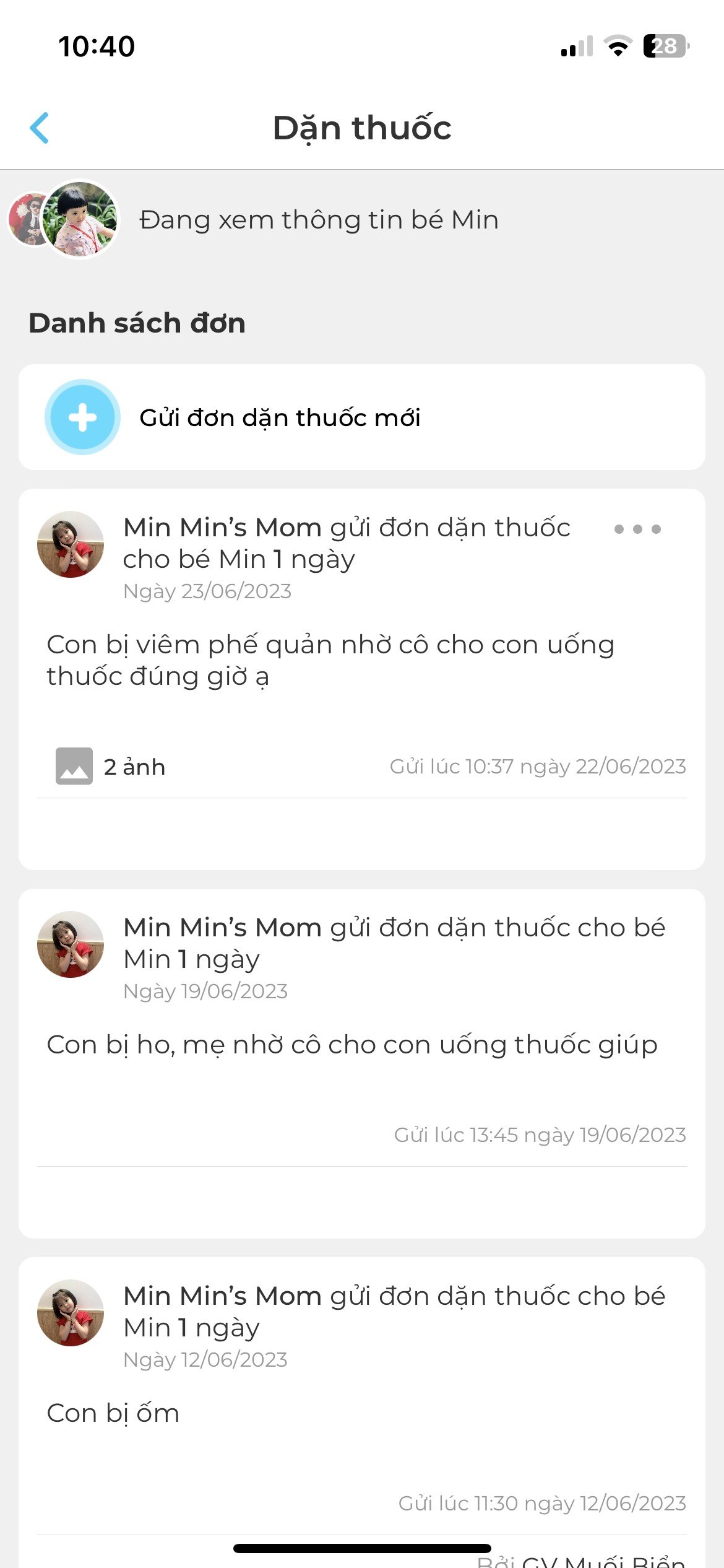 Mỗi khi trẻ ốm, bố mẹ thường lo lắng và muốn con ở nhà chăm sóc đến khi khỏi hẳn mới đi học. Tuy nhiên các bậc phụ huynh ngày nay lại luôn bận rộn với công việc không thể chăm sóc con cả ngày được. Do đó hầu hết các bố mẹ đều cho trẻ nghỉ 1-2 ngày và sau đó tiếp tục đưa trẻ đến lớp. Tuy nhiên trẻ vẫn phải uống thuốc và việc bố mẹ lo lắng chính là liệu các cô có cho con uống đúng loại thuốc không, có cho con uống đúng giờ không. Bố mẹ liên tục nhắn tin gọi điện để đảm bảo rằng các cô sẽ quan tâm chú ý chăm sóc hơn tới con mình, như vậy sẽ làm mất thời gian của cả phụ huynh và giáo viên mầm non.Xuất phát từ thực trạng vấn đề đó, Kidsonline đã đưa vào hoạt động tính năng Dặn thuốc để đáp ứng nhu cầu và xóa tan hoàn toàn nỗi lo của các bậc phụ huynh học sinh khi gửi con tại trường.